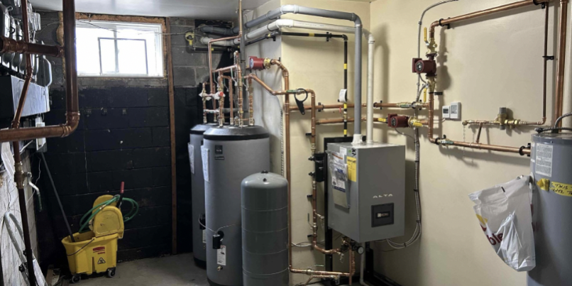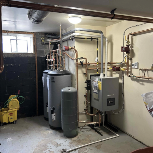 We replaced the aging oil boiler with a new high efficiency condensing boiler, Alta Boiler Model ALTA-180-1G00 Heat-Flo 60 Gallon. We also added two in-direct water heaters to serve all the building’s units with a consistent supply of heat and hot water.